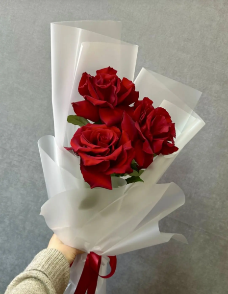роза - 3 шт, упаковка, лента |