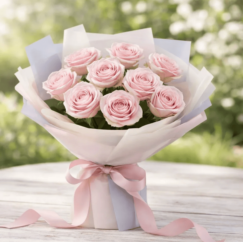 роза-9шт,упаковка, лента |