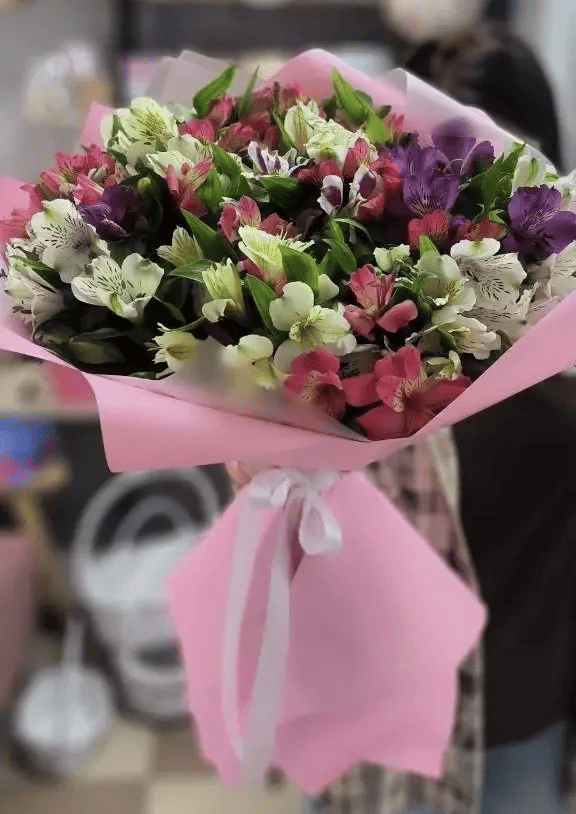 Букет из белых и розовых альстромерий – это истинное произведение искусства, которое радует глаз и поднимает настроение.