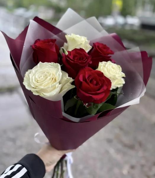 роза-7шт,упаковка, лента |
