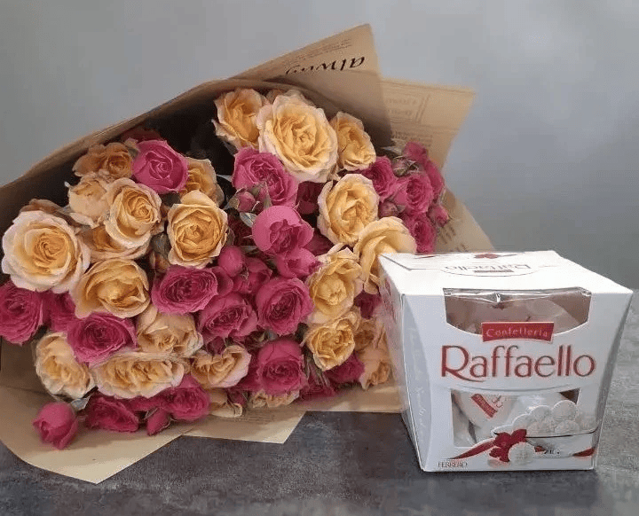 - Премиум - роза кустовая - 15 шт., упаковка, лента
