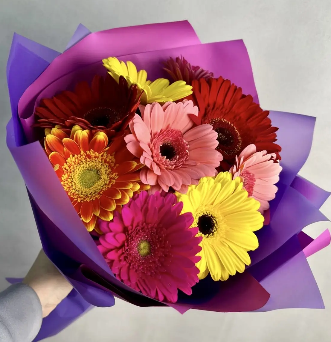 Пышные соцветия гербер символизируют радость, искренность и лёгкость, делая букет идеальным подарком для любого повода - от дня рождения до приятного сюрприза без причины.